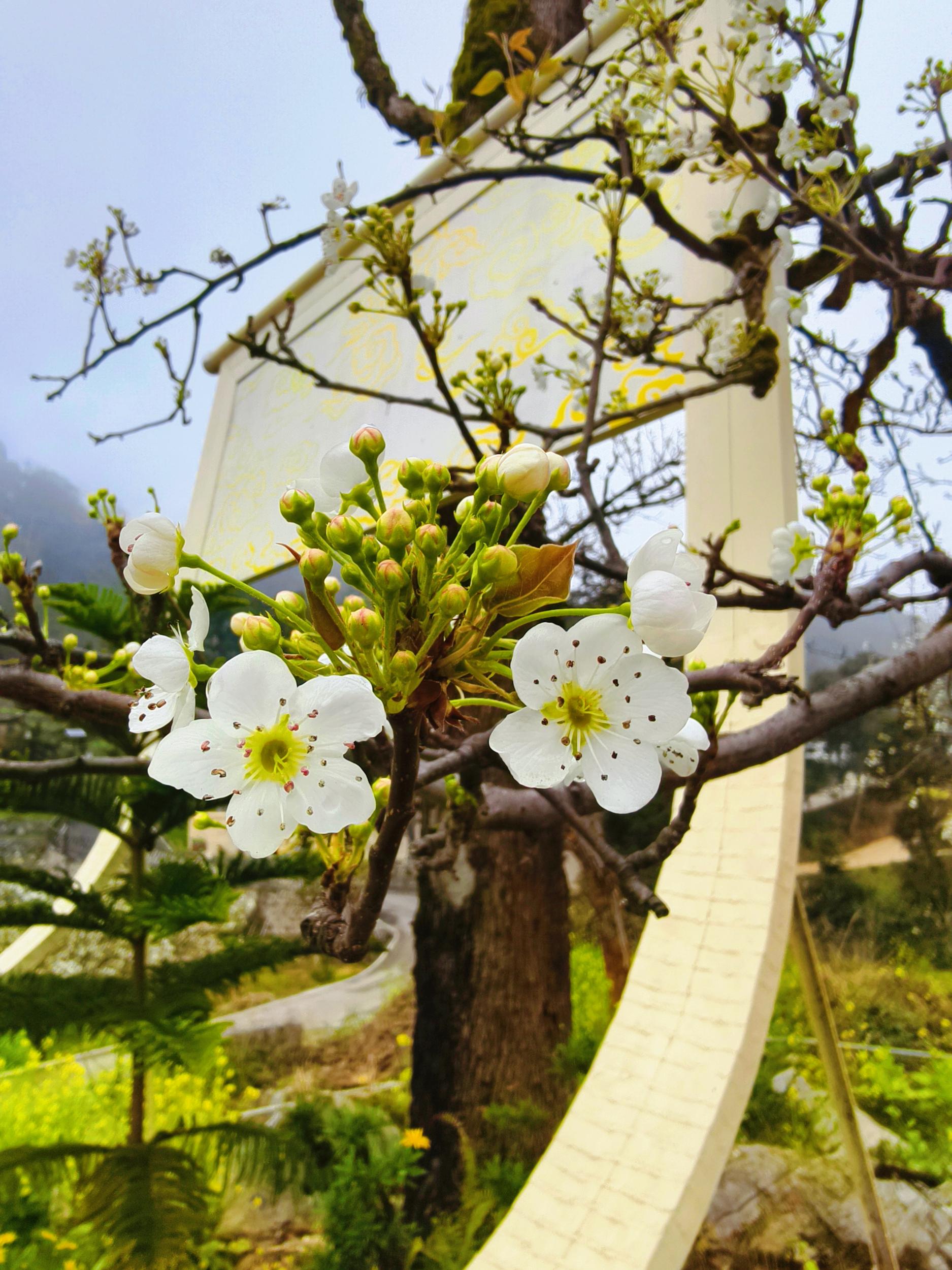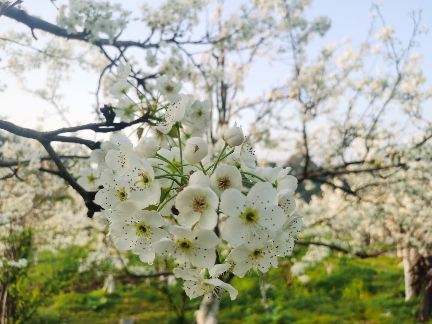 这不是一场自然的雨雪,而是一场由千万朵梨花织就的视觉盛宴。放眼望去,那一树树、一簇簇的梨花,开得毫无保留,动人心魄,仿佛要将积蓄了整整一个冬天的能量,在这阳春三月悉数献给大地。此情此景,恰如当地那句流传已久的浪漫诗语“梨花如雪百年约,我与阳春共白头。”