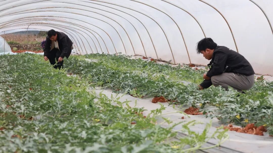 他说,基地通过土地流转方式建设,每亩租金1400元,租期3年。于2025年11月开始整地,12月搭建大棚,今年1月15日完成定植。生产中优先吸纳本地群众务工,100亩基地年用工量预计达600人次。基地实行精细化中耕管理,头茬瓜亩产2.8—3吨,二茬瓜2.5—3吨,产品主要销往广西、广东、四川、贵州等地批发市场与商超。