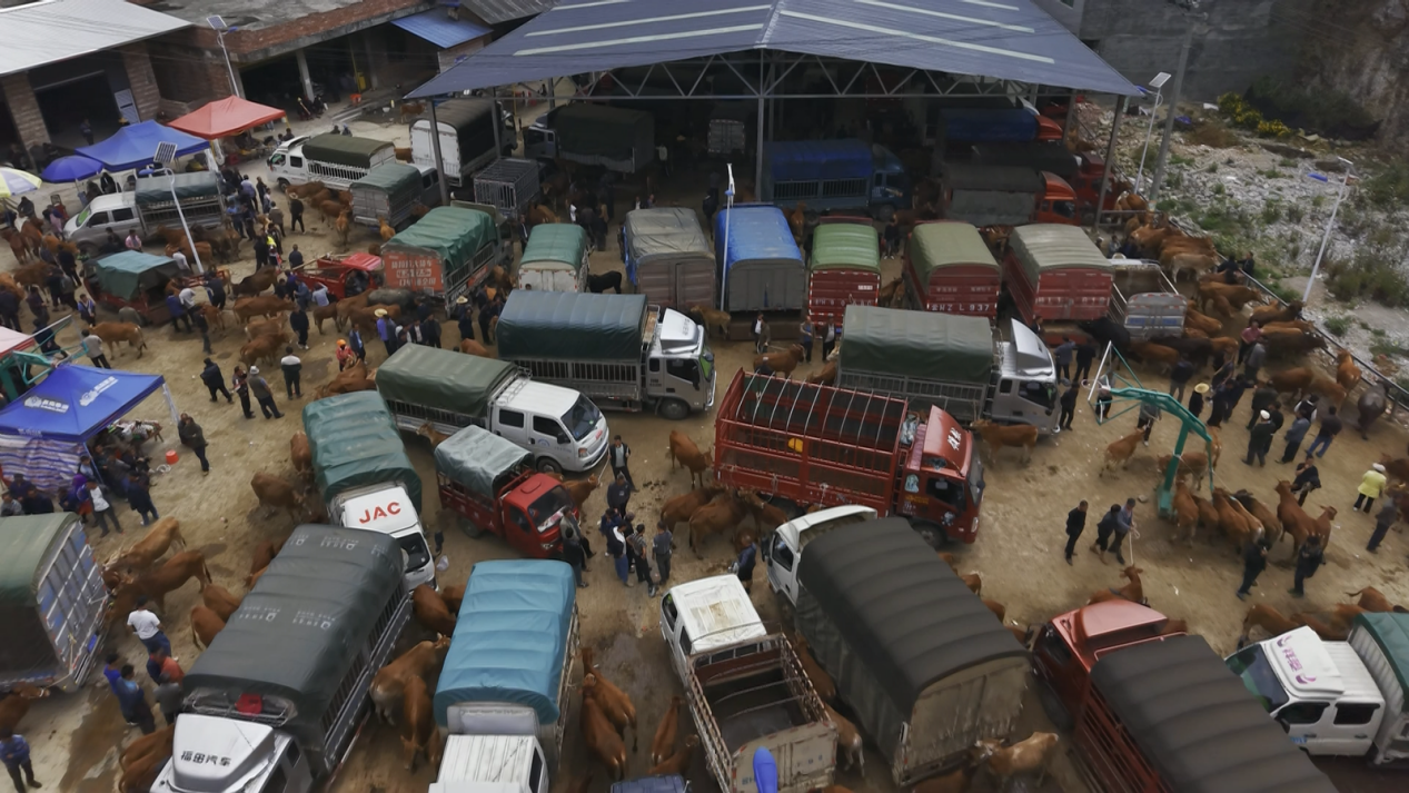 “孩子小,不能出去打工。每逢街天,我们就做点牛生意。”天生桥村的张国喜一边招呼着收购商,一边乐呵呵地说。他家养着牛,平时也会到其他养殖户家收牛,在家门口的市场就能完成交易。“每个街天平均交易四五头,少的时候赚几百元,多的时候能赚一两千元。”