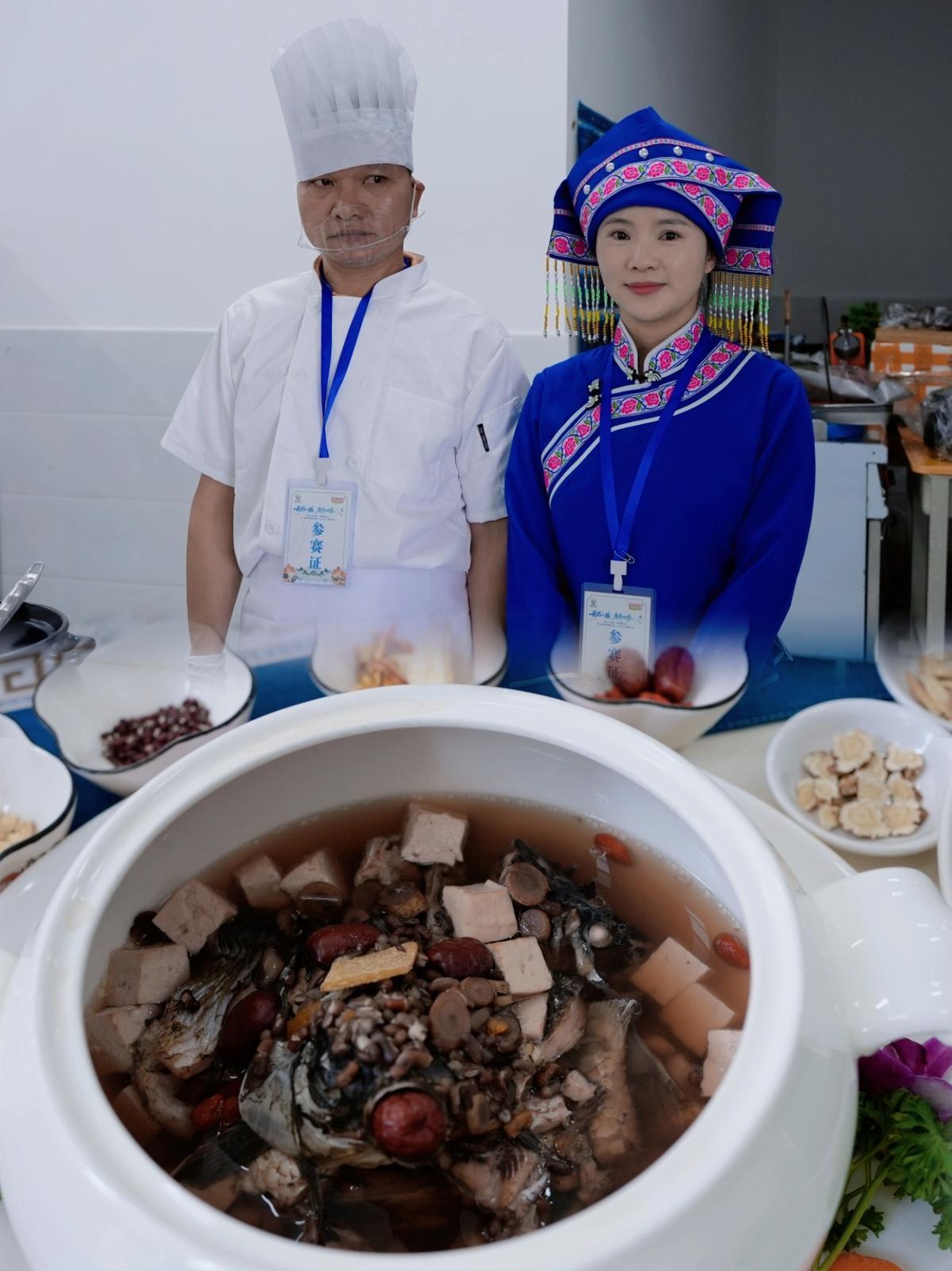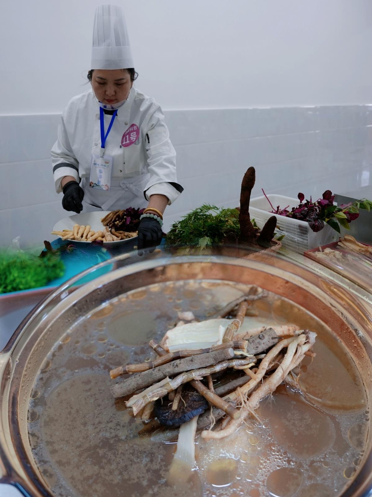 “我们的药膳加入锁阳、血塞通、金不换、川芎、红花蝴蝶等正宗苗家药材,主打补肾气、补阳气、补元气,还能引火下行,对女性月经不调调理效果显著。”谈及此次药膳比赛,文山苗膳荣润园参赛队的刘兴仙表示:“此次参加药膳比赛,能把苗族优质药膳良方推广出去,让更多人了解苗族医药,将特色苗家药膳普及给大众,我觉得太有意义了。”