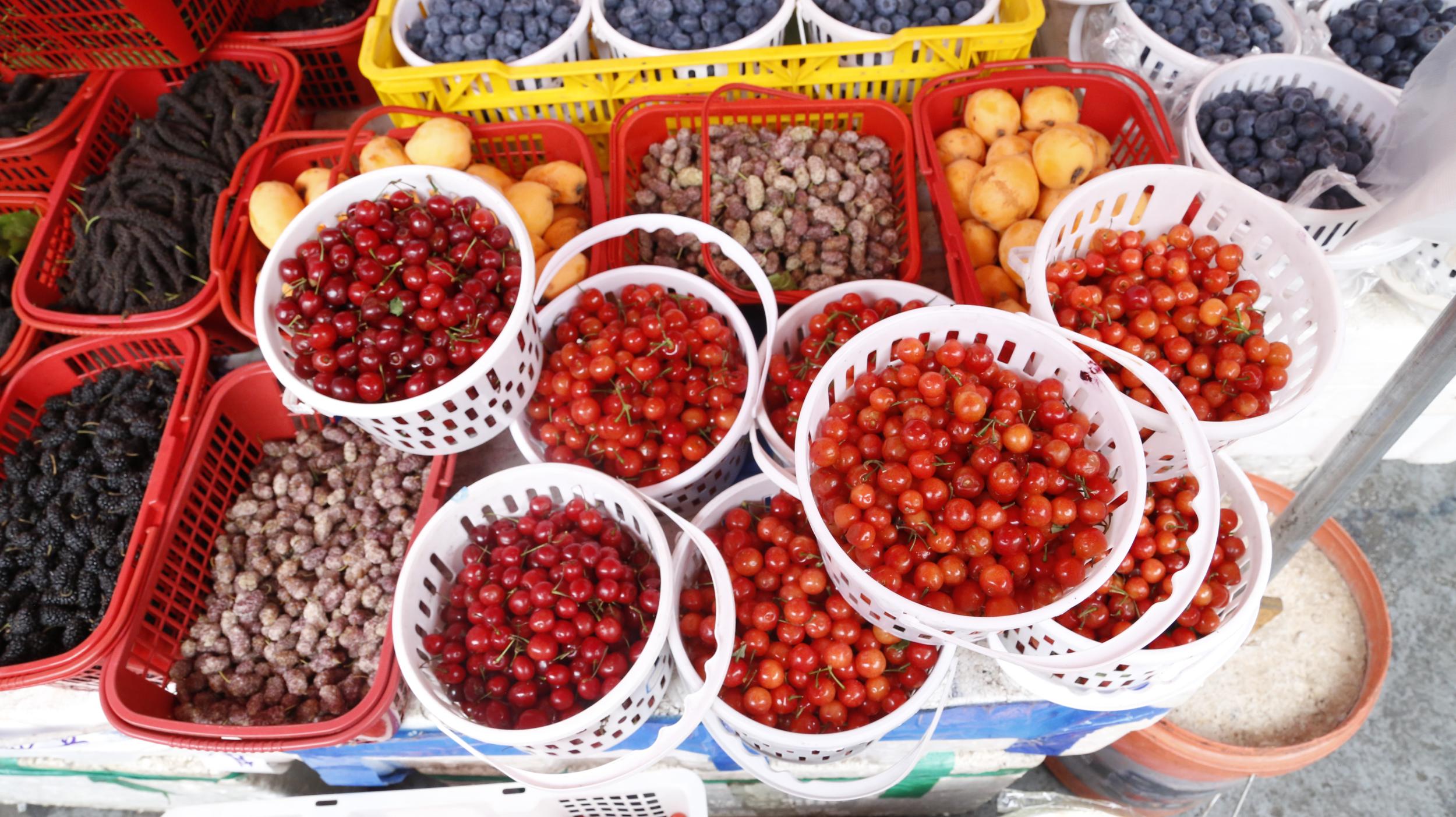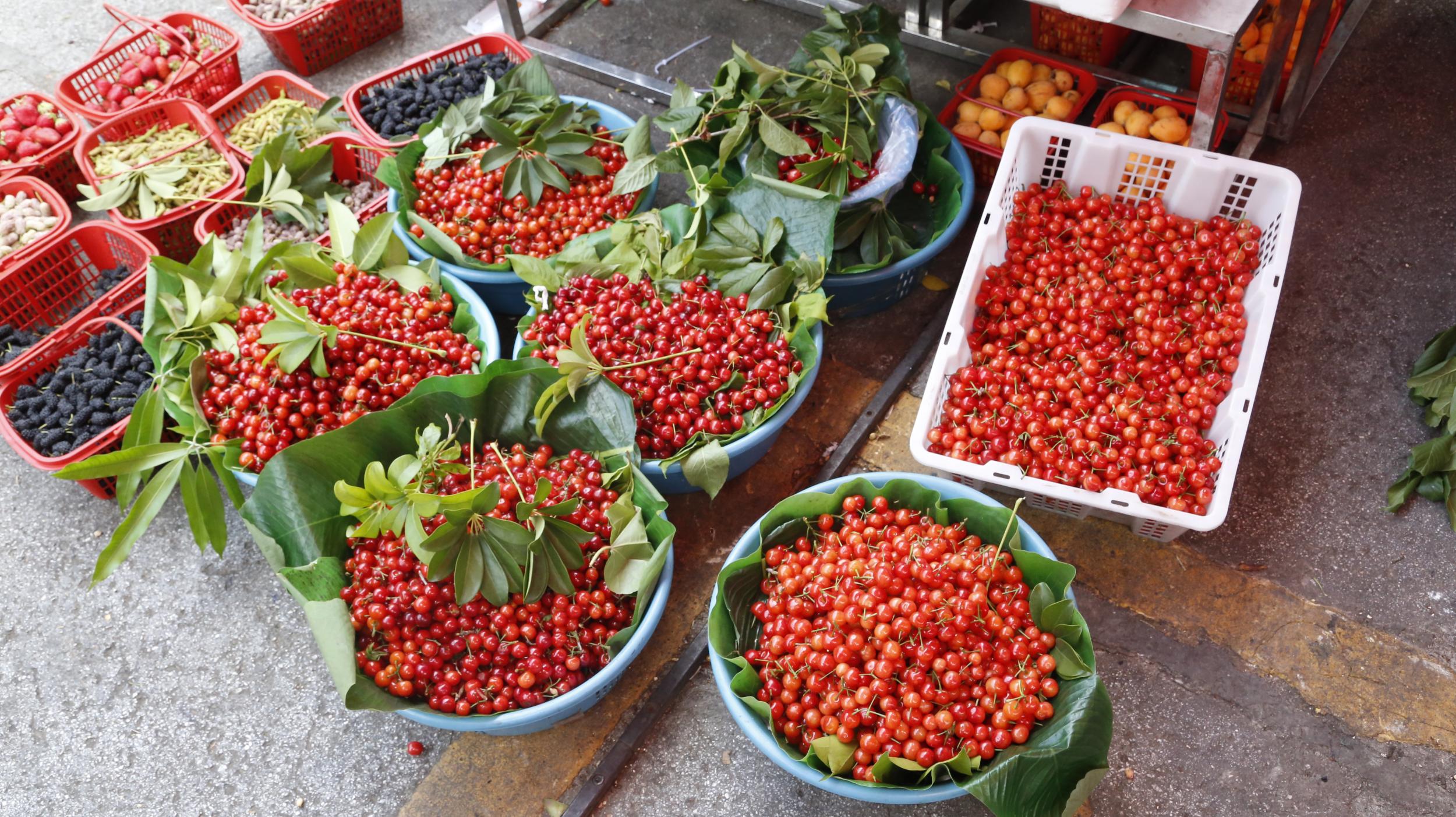 据市场内水果商户朱文庆介绍,今年文山市的樱桃上市时间比往年略有提前。主要以“玛瑙红”这种品质为主,由于今年降雨较少,樱桃结果数量较多,价格也随之走低,目前每斤仅售10至12元。实惠的价格吸引了大量顾客前来购买,朱文庆表示,一天能卖出40到50斤左右。