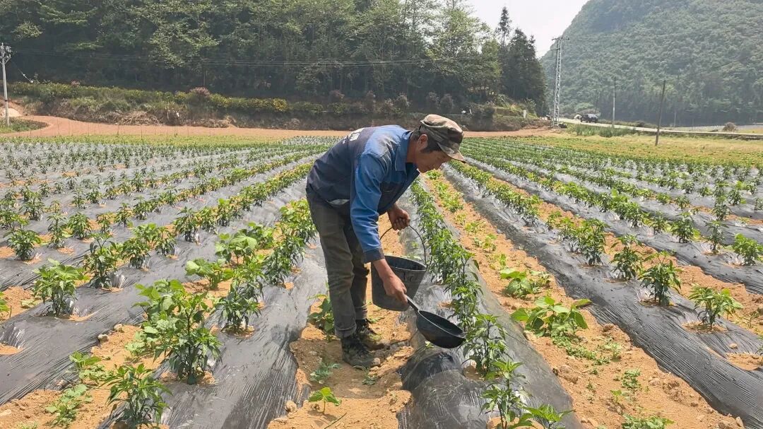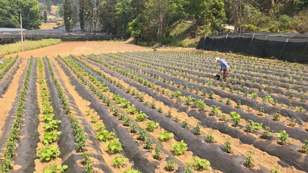 春末夏初,文山壮族苗族自治州马关县八寨镇广袤的田野间,连片的辣椒地绿意盎然。一株株辣椒苗长势喜人,虽未到挂果时节,但枝叶繁茂,生机勃勃,农户们穿梭其间,精心管护,勾勒出一幅充满希望的丰收画卷。