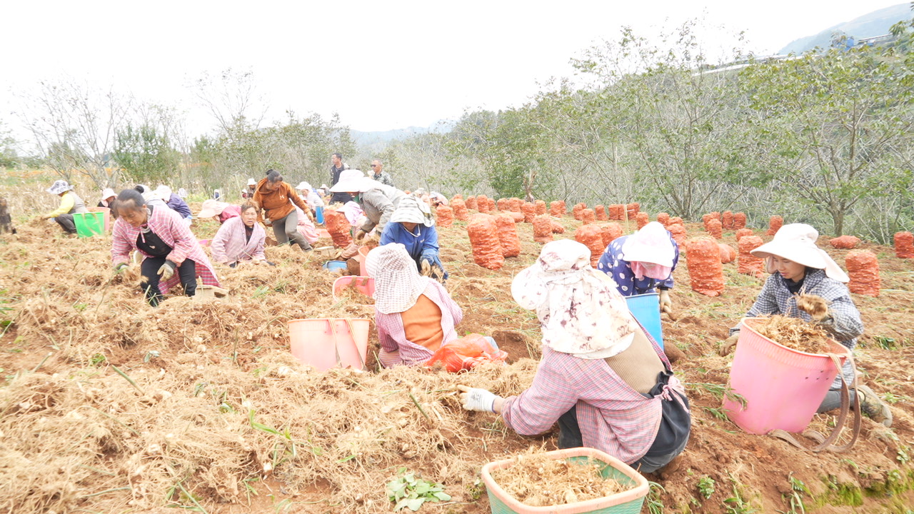 基地里,以杨加艳为代表的务工群众,也跟着黄精产业沾了光。她们组成“采挖队”包地块干活,日均收入200元左右,“几十个人一起干,这家挖完换下家,能持续一两个月,每月工资超3000元!”杨加艳擦了擦额头的汗,望着连片的黄精满眼羡慕,“要是能跟着学技术就更好了,以后说不定自己也能种。”如今,马关县8000余亩黄精种植基地,不仅让种植户腰包鼓起来,还带动周边闲置劳动力参与育苗、定植、施肥、采挖等环节,让大家共享产业红利。