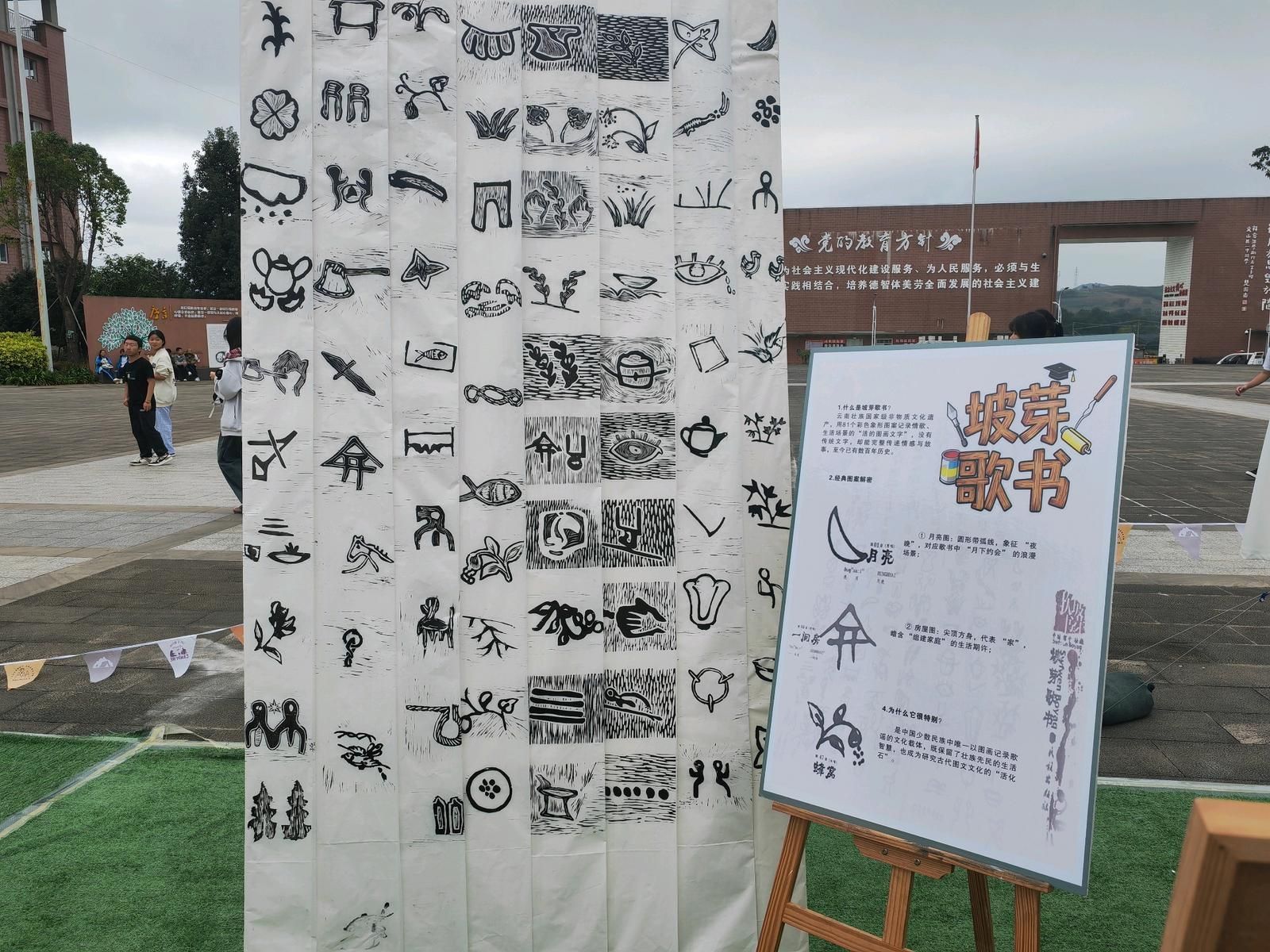 据介绍,此次活动的核心就是“旷”和“野”。前者是文化视野的开阔,《坡芽歌书》的非遗符号,壮锦、铜鼓等民族纹样,甲马的民俗内涵还有身边的校园记忆都纳入版画创作内容,让大家在印记中触摸多元文化。“野”就是创作的自由,敢尝试,敢表达。活动让版画走出画室,走到学生中间。