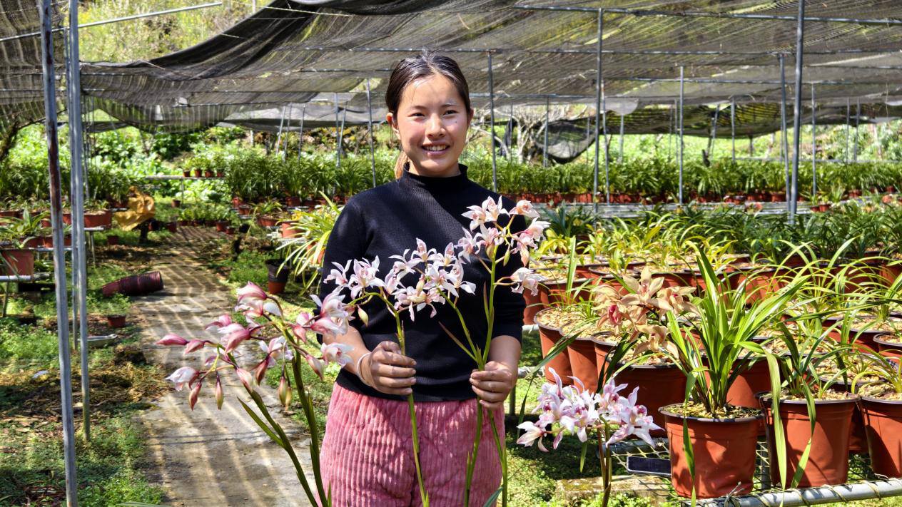 为拓宽销售渠道,姚力紧跟数字化浪潮,2021年开启电商直播之路。她在各大平台搭建“兰花经济”专属账号,每日坚持直播推介并更新产业相关视频,让兰花走出深山。“每株苗价格从几十元到几百元不等,年收入能稳定在20万元以上。”姚力介绍,直播接单后及时发货,优质的兰花与服务收获了客户广泛好评。